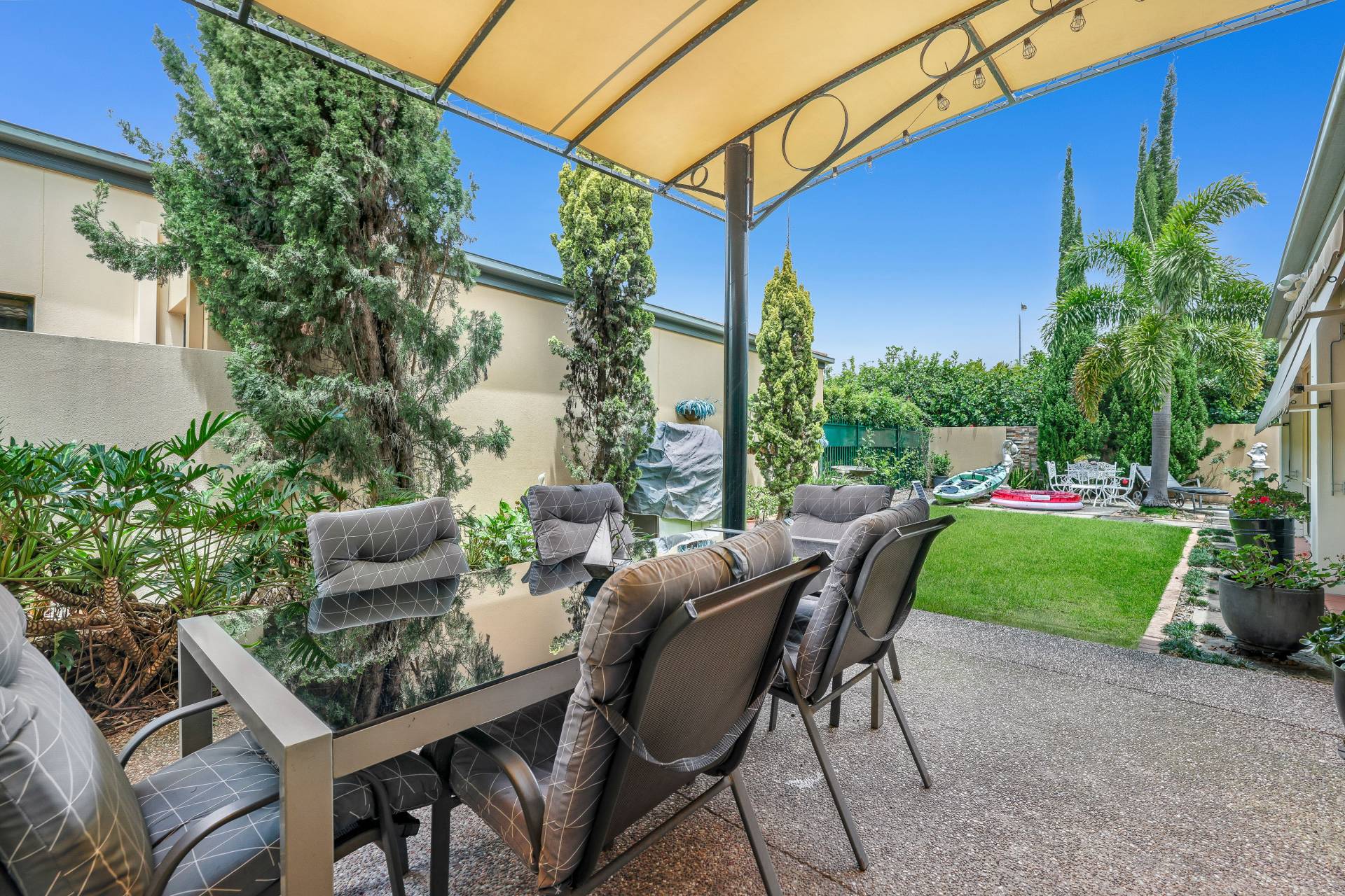 Two large outdoor entertaining areas.